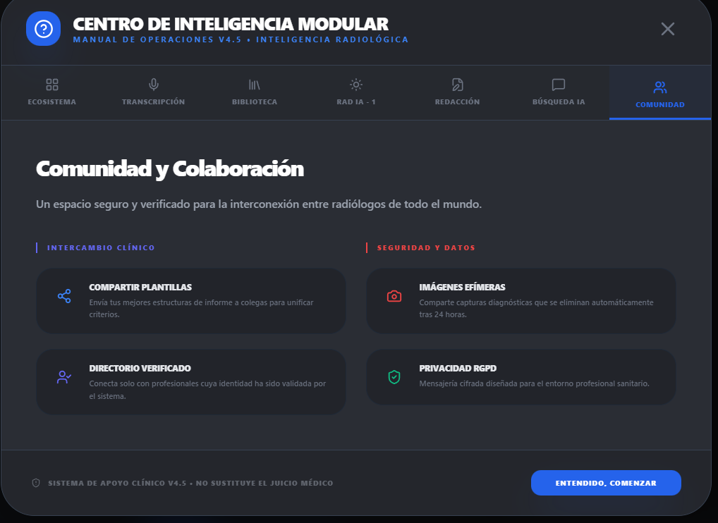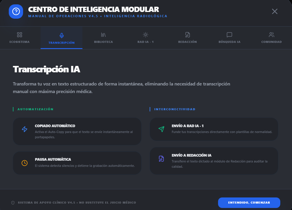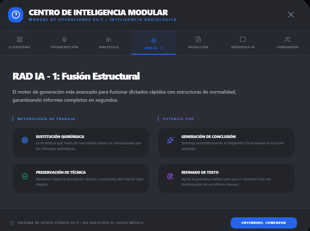 La plataforma de imagenxradiology.com ha transformado mi práctica radiológica. La precisión del Motor PhD es impresionante y ha mejorado significativamente la calidad de mis informes.